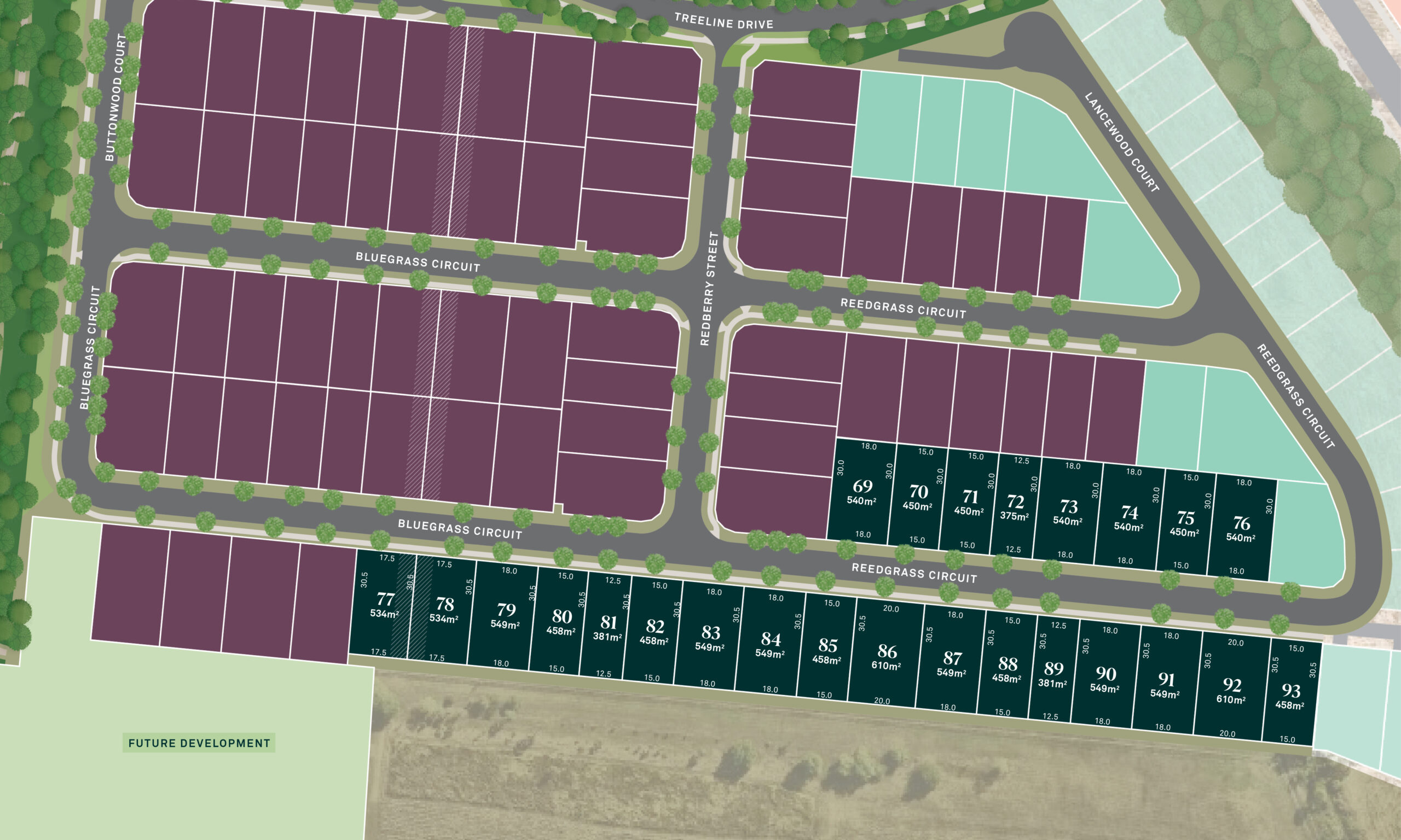 The Reedgrass Land Release features 25 exclusive, level lots ranging from 375m² to 610m², providing ample space to design and build your dream home. Thoughtfully planned, this release is designed to support a lifestyle centered on connection and outdoor living.